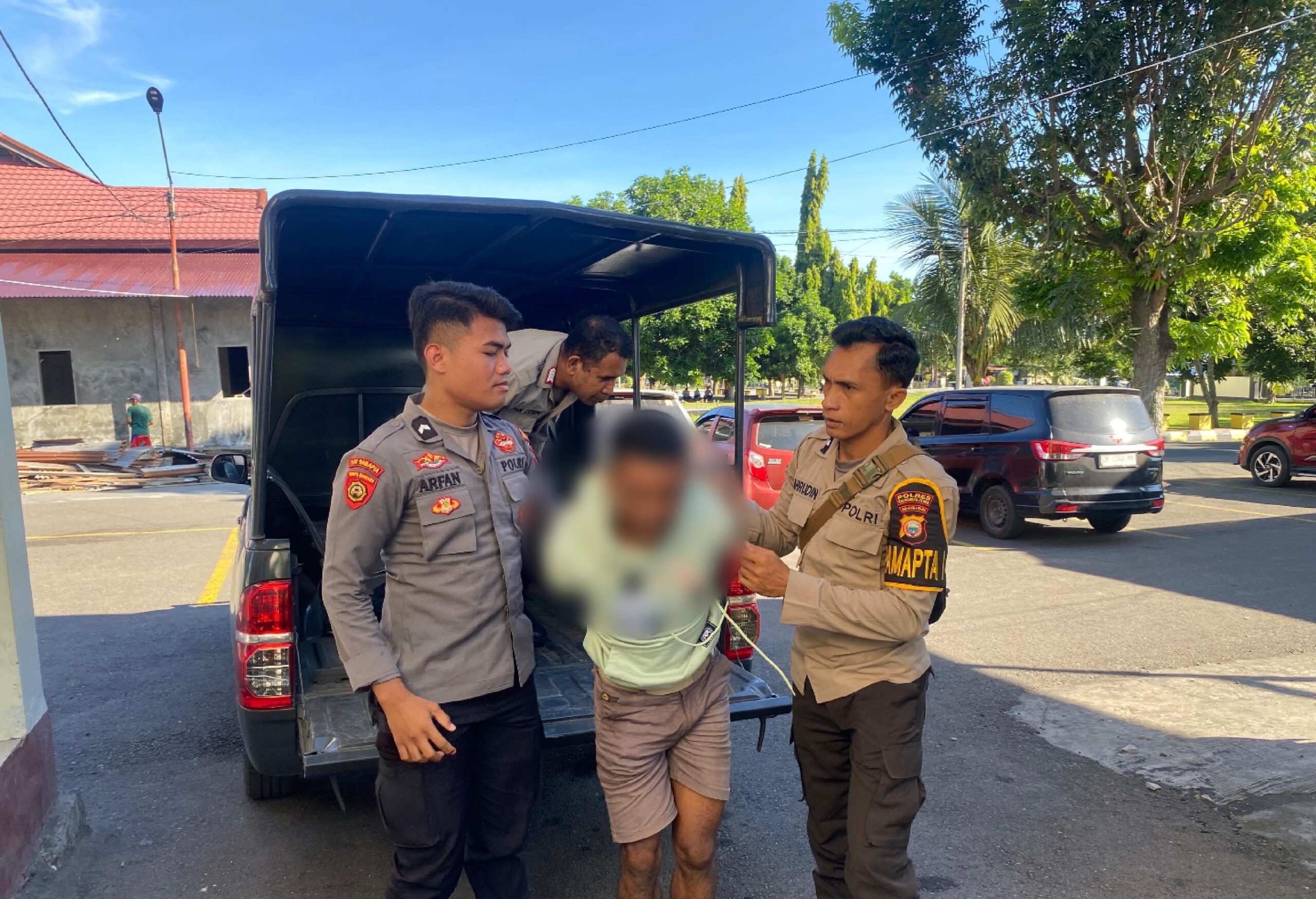 Pamapta Polres Halmahera Utara sigap menanggapi laporan warga terkait pencurian biji pala, personel Pamapta Polres Halut langsung bergerak cepat menuju lokasi dan mengamankan pelaku pencurian di gudang pembeli biji pala di desa Gosoma, Jumat (28/11/25)